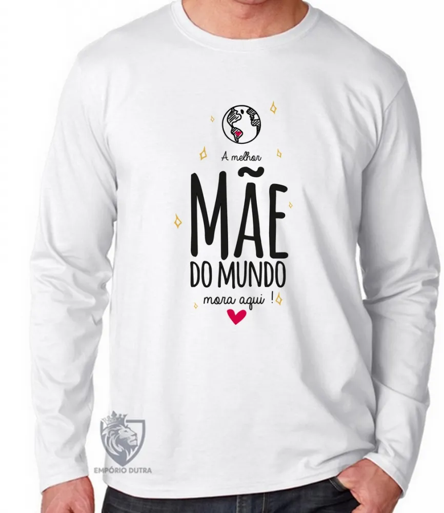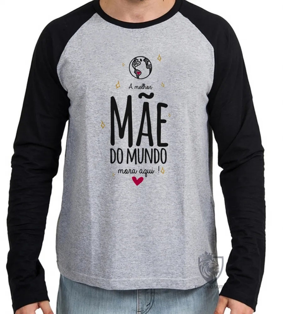Camiseta manga longa Infantil ou Adulto mãe mora aqui dia das mães