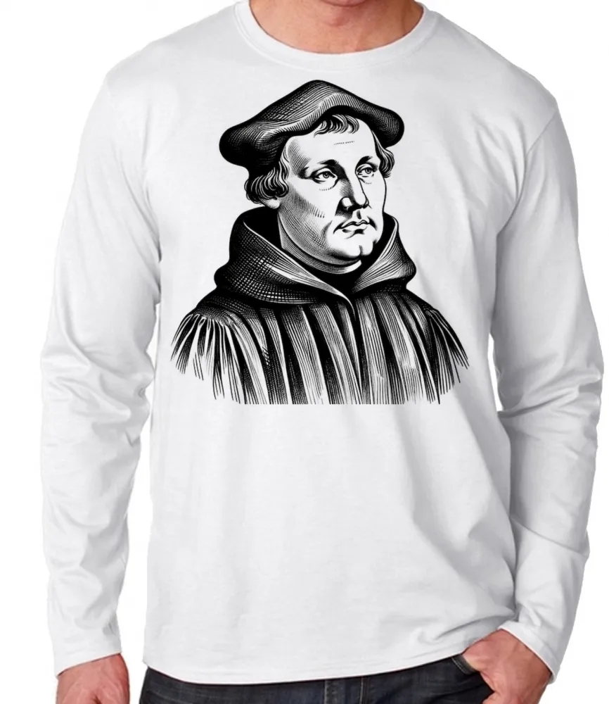 Camiseta manga longa Infantil ou Adulto Martin Lutero Evangelico Protestante