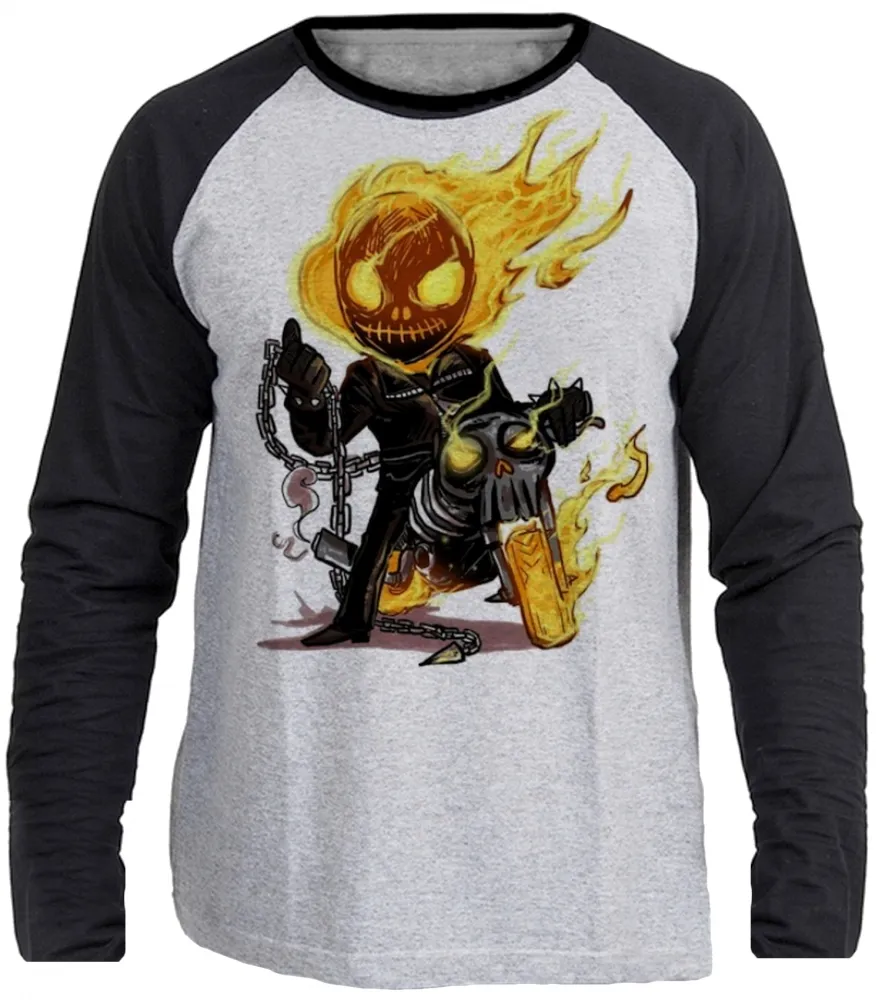 Camiseta manga longa Infantil ou Adulto Motoqueiro fantasma moto bike