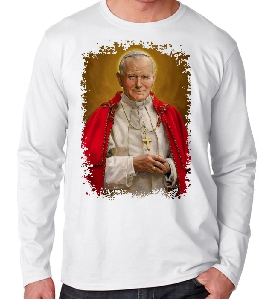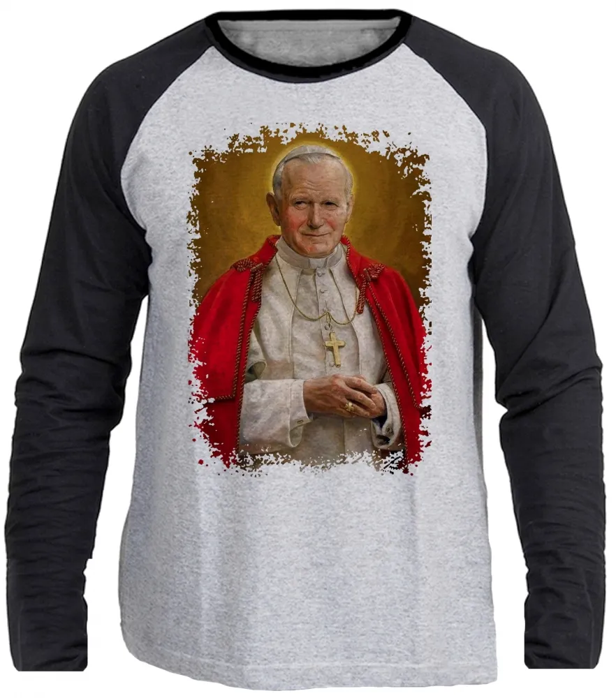 Camiseta manga longa Infantil ou Adulto Papa João Paulo Jesus Cristo