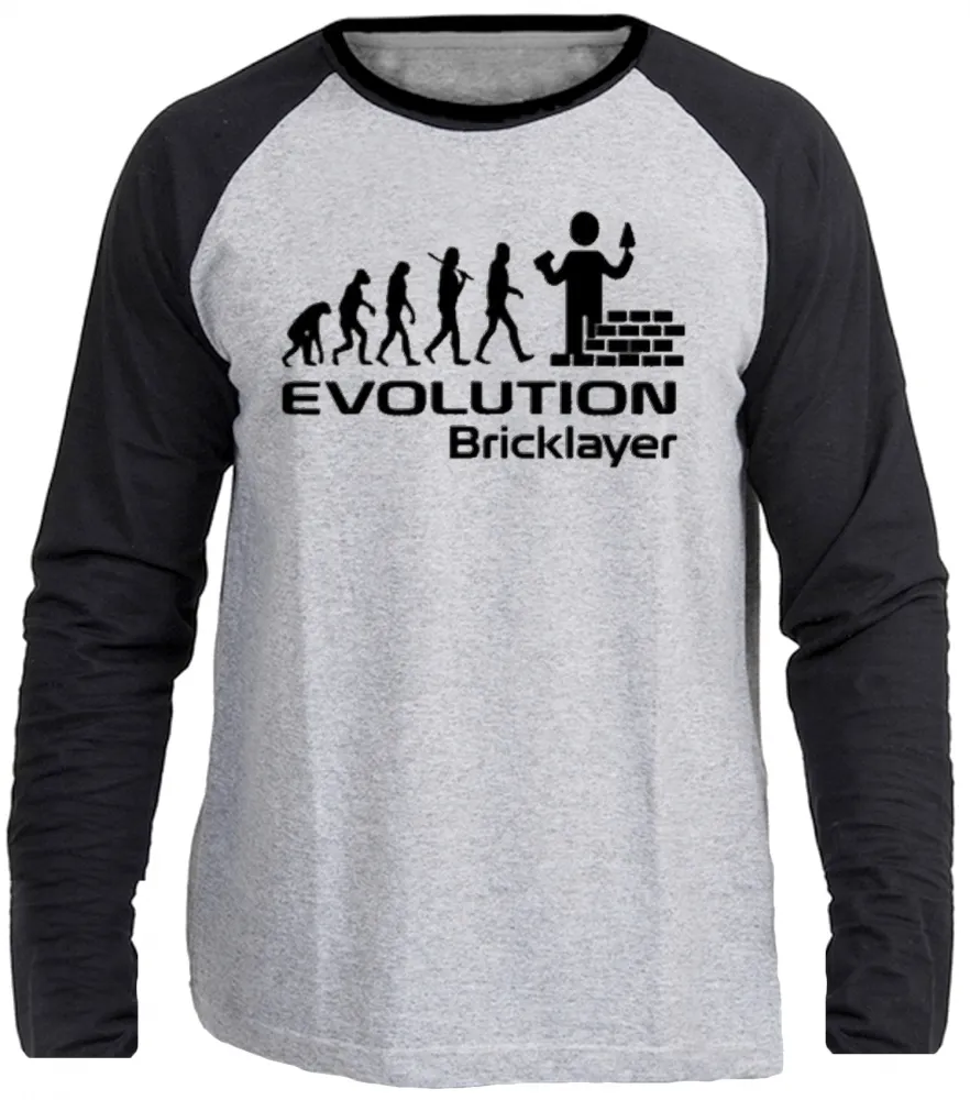 Camiseta manga longa Infantil ou Adulto Pedreiro construtor evolução