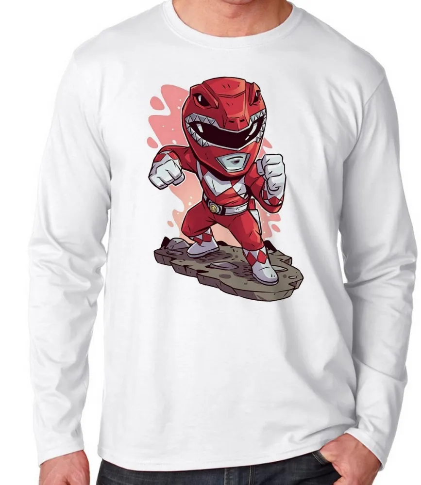 Camiseta manga longa Infantil ou Adulto POWER RANGER RED