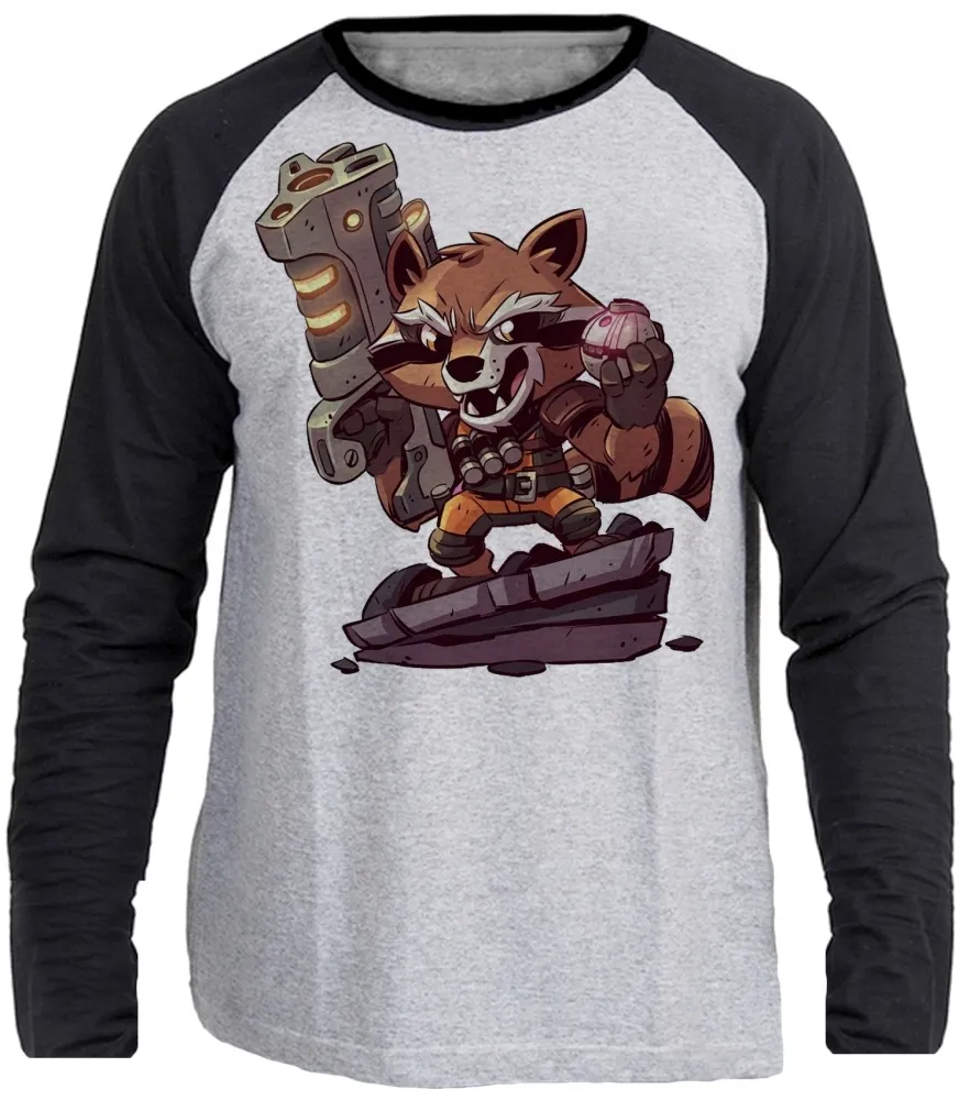 Camiseta manga longa Infantil ou Adulto Rocket guardioes galaxia