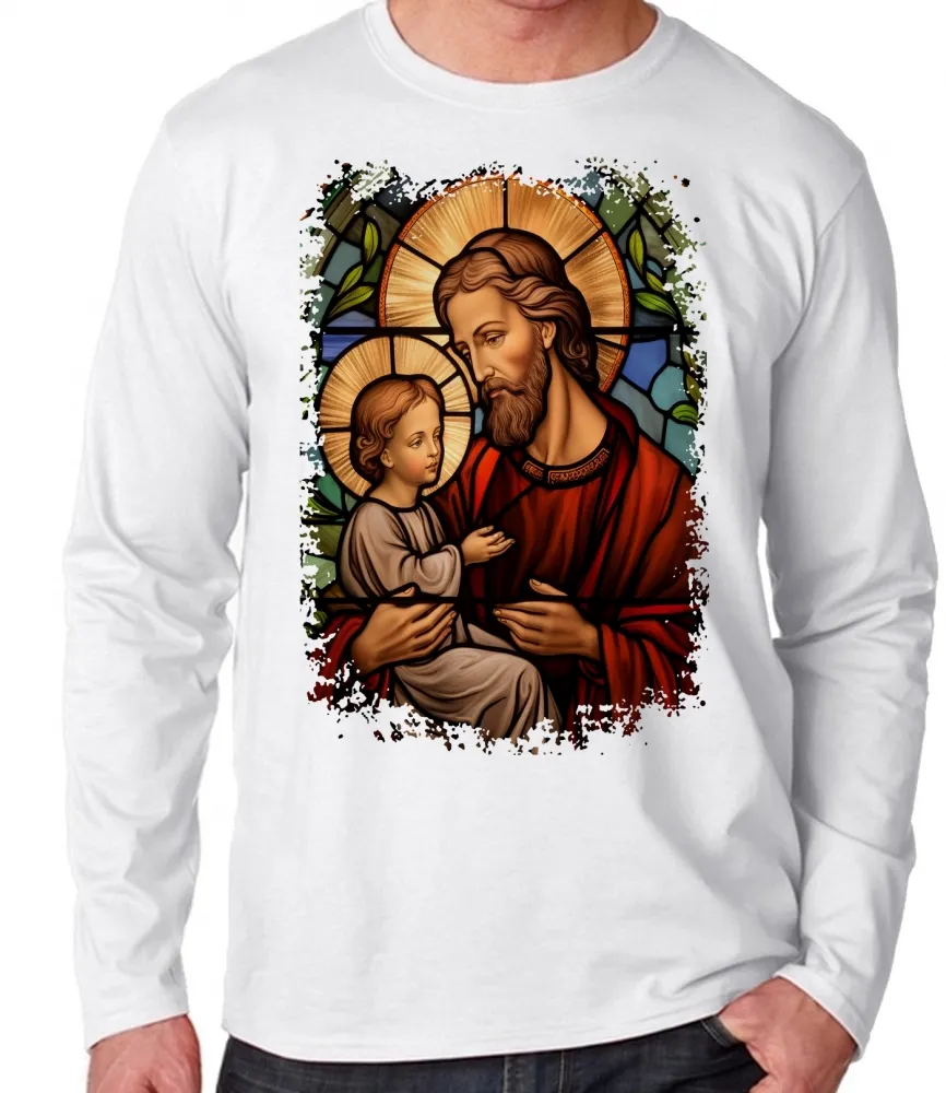 Camiseta manga longa Infantil ou Adulto São Jose Jesus Vitral