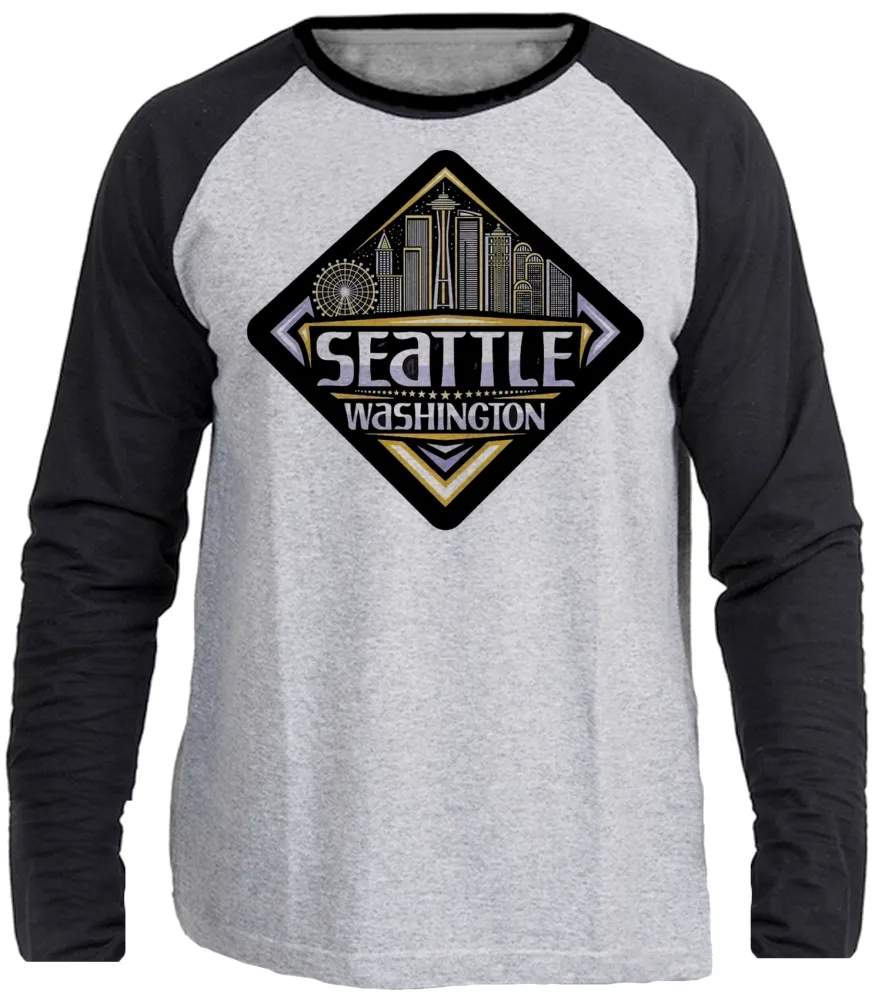 Camiseta manga longa Infantil ou Adulto Seattle Washington lembrança