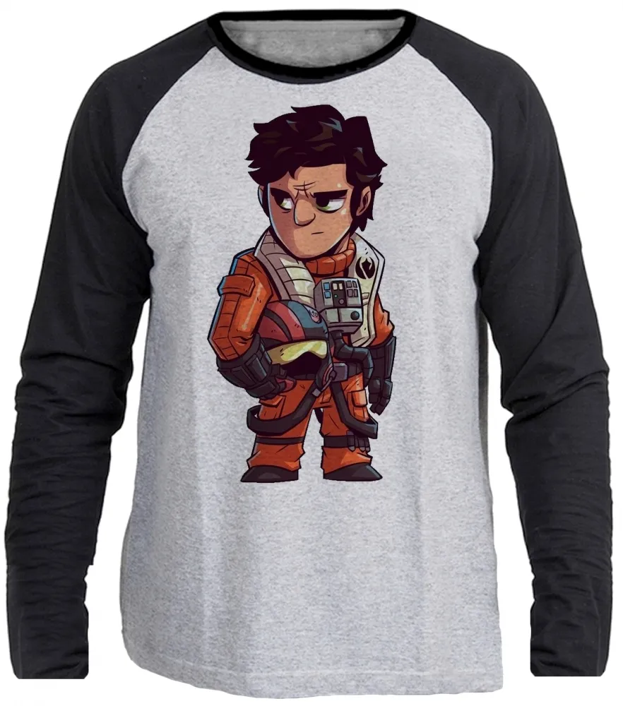 Camiseta manga longa Infantil ou Adulto Star wars piloto Poe Dameron