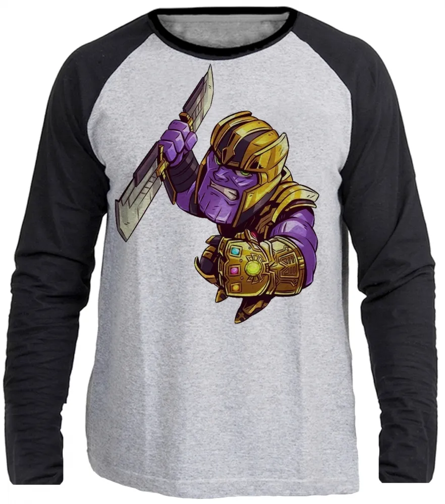 Camiseta manga longa Infantil ou Adulto Thanos vilão vingadores espada