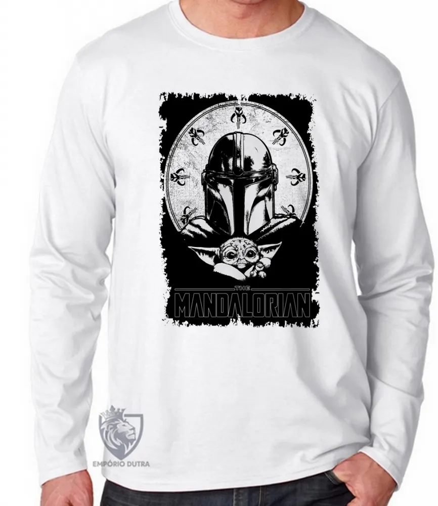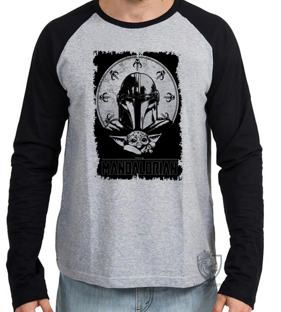 Camiseta manga longa Infantil ou Adulto The Mandalorian preto