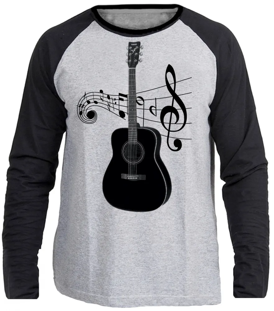 Camiseta manga longa Infantil ou Adulto Violão musica musico