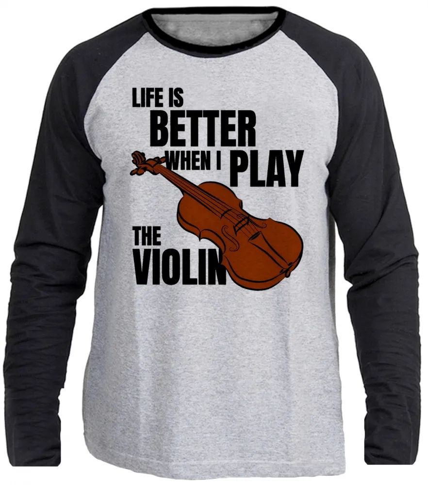 Camiseta manga longa Infantil ou Adulto Violino musico musica