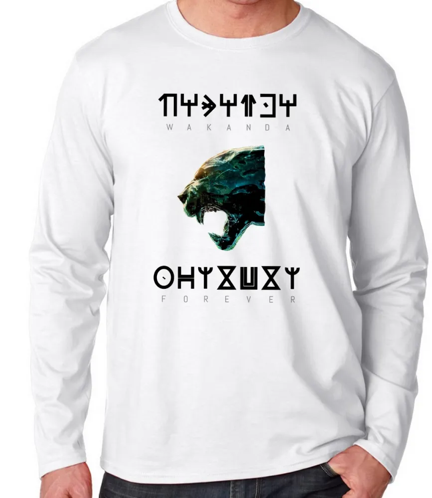 Camiseta manga longa Infantil ou Adulto wakanda forever pantera negra black panther
