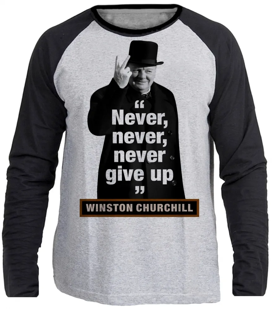 Camiseta manga longa Infantil ou Adulto Winston Churchill se render jamais direita nerver give up