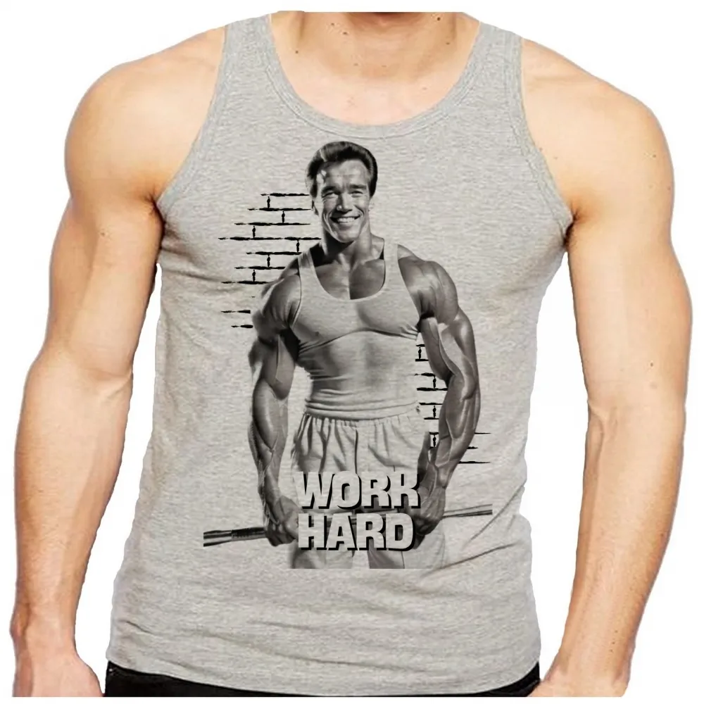 Camiseta Regata adulto ou infantil arnold schwarzenegger work hard croos fit academia maromba