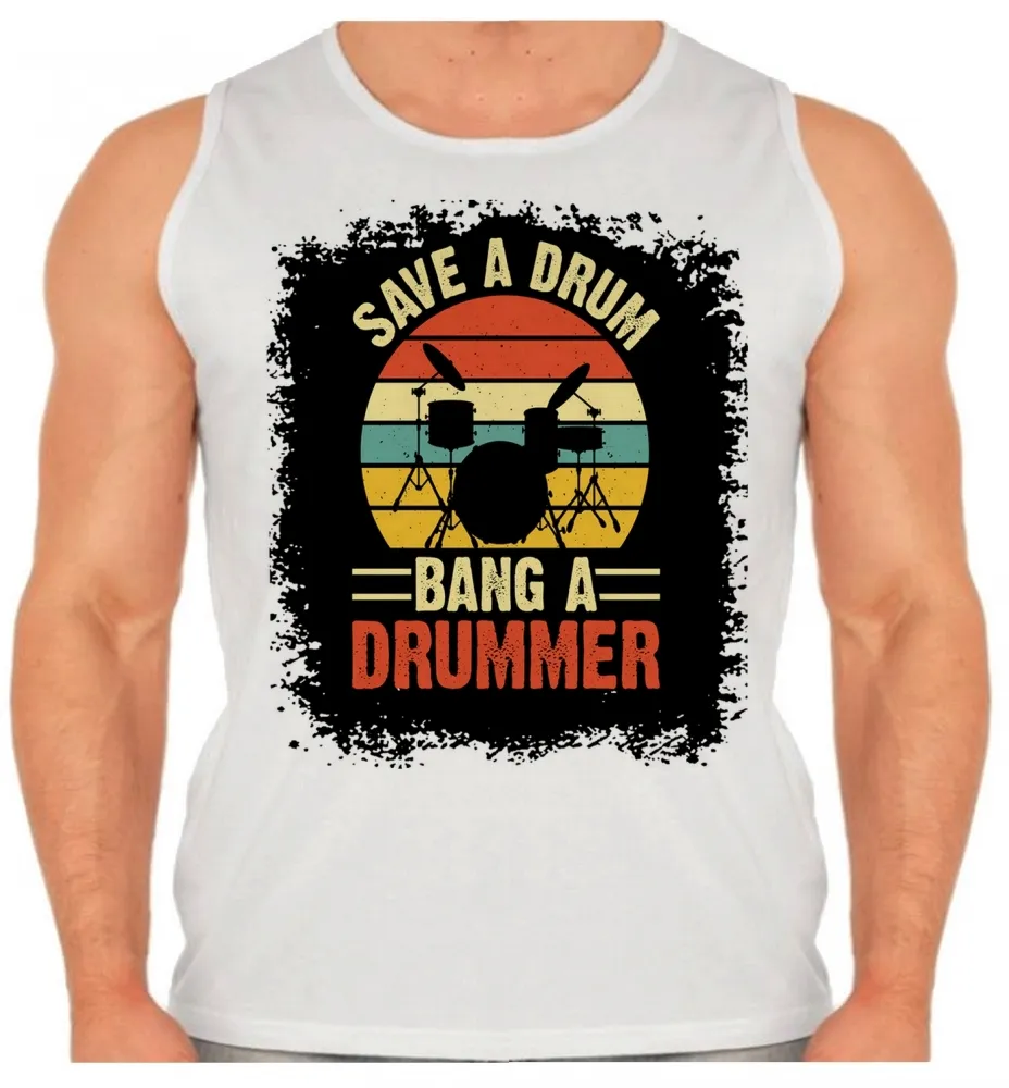 Camiseta Regata adulto ou infantil Bateria baterista rock musica