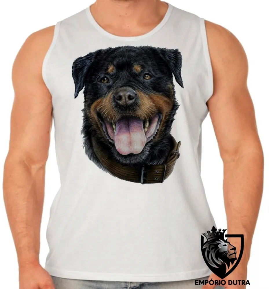Camiseta Regata adulto ou infantil cachorro cão dog rottweiler raça canina