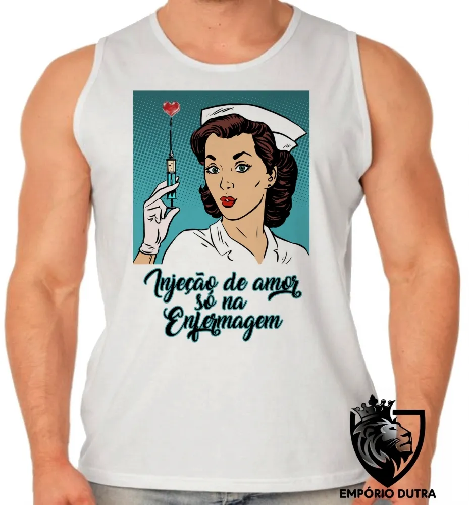 Camiseta Regata adulto ou infantil Enfermagem injeção de amor