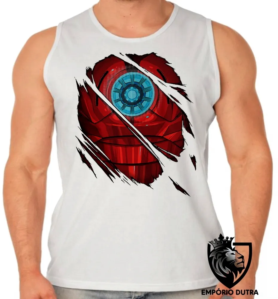 Camiseta Regata adulto ou infantil Homem ferro reator armadura iron man