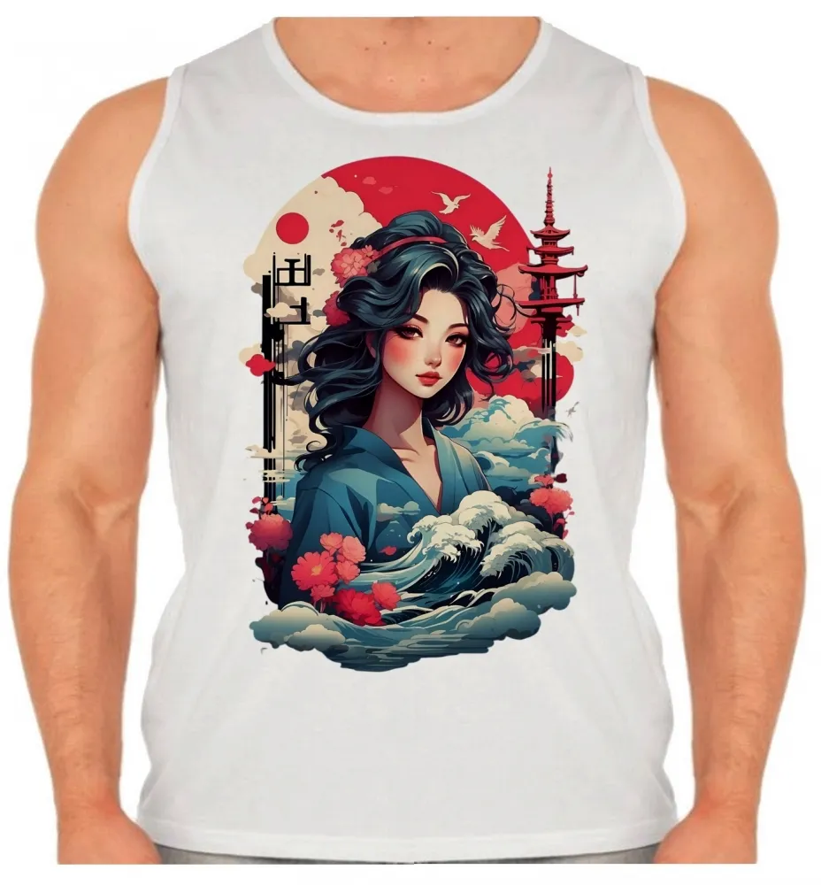 Camiseta Regata adulto ou infantil Japonesa Japão gueixa mulher artista