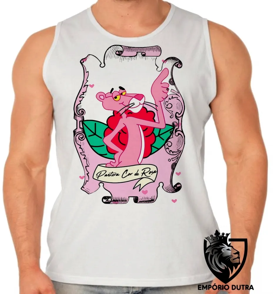 Camiseta Regata adulto ou infantil Pantera cor de rosa moldura