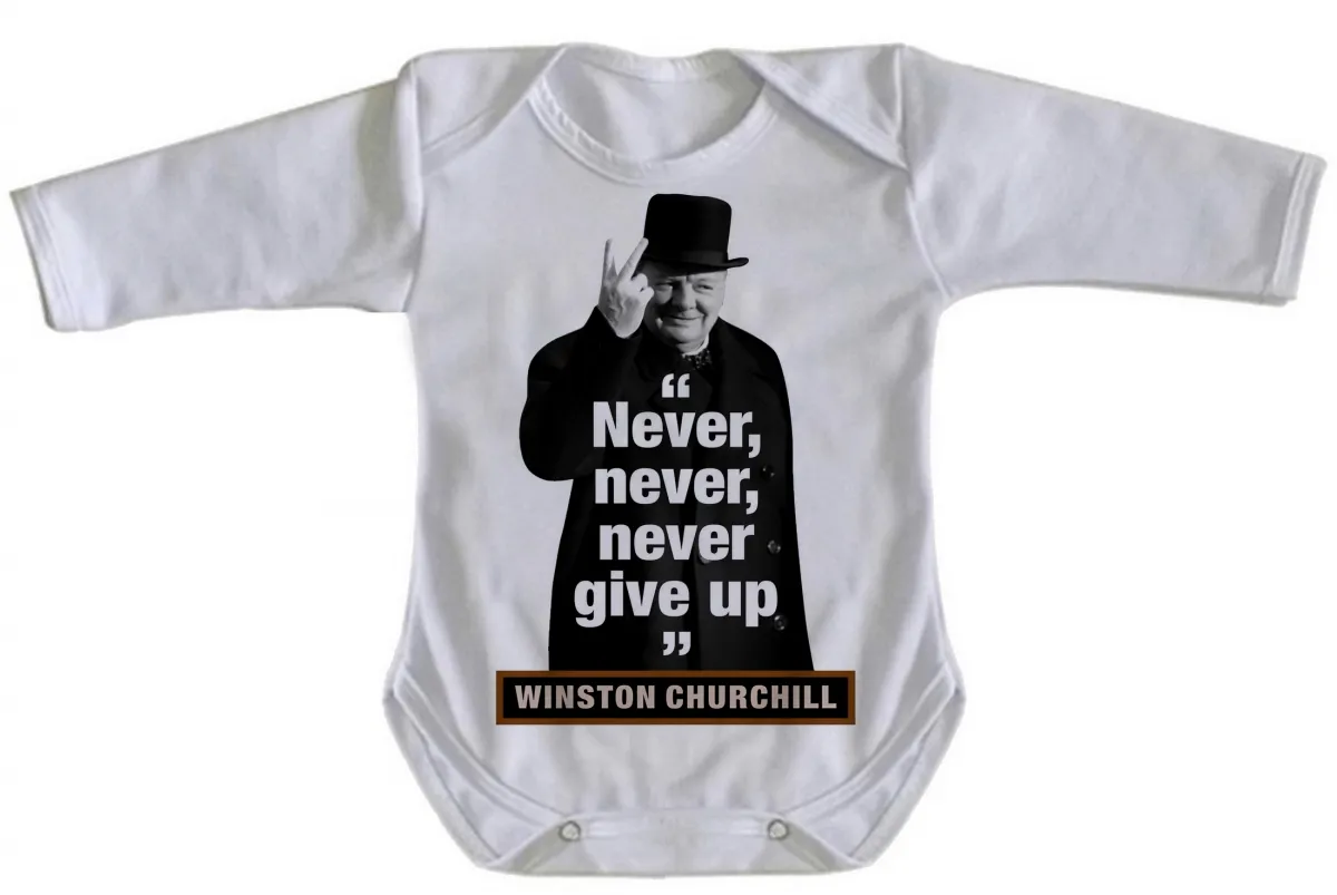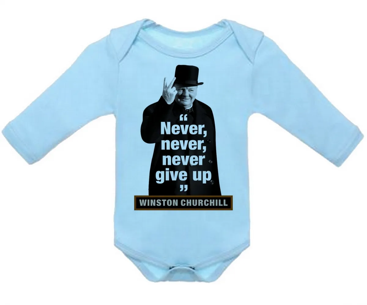 Roupa Bebê manga longa Winston Churchill se render jamais nerver give up